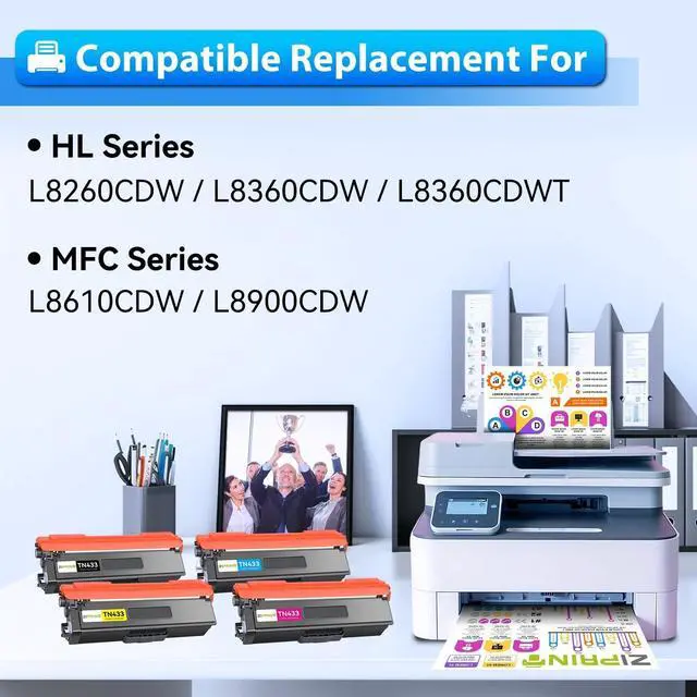 Wide Compatibility: TN433 toner cartridge replacement for Brother printer models including MFC-L8900CDW, HL-L8360CDW, HL-L8360CDWT, HL-L8260CDW, MFC-L8610CDW, MFC-L8895CDW. Designed as a perfect replacement for the TN433 TN431 TN-433 TN-431 TN 433 TN 431 toner ^^