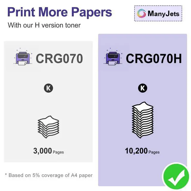 PACKAGE CONTENTS: ManyJets compatible 070 Toner Cartridge replacement for Canon 070H 070 H CRG070 CRG-070 CRG070H Toner Cartridge (With chip, 2-pack, NON-OEM) ^^