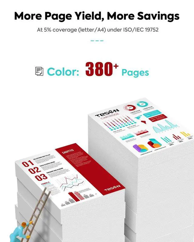 High Page Yield: 380 Pages for 276xl color ink cartridge At 5% coverage.