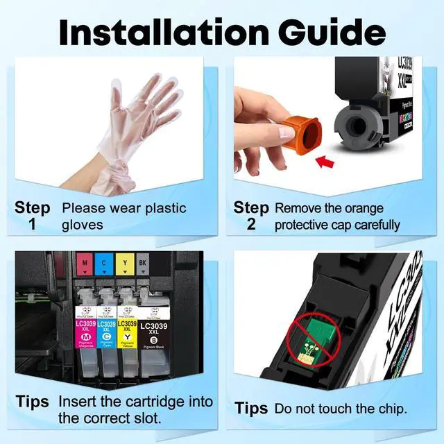 Package Contents: 4 pack Replacement ink for Brother LC3039 LC3039XXL LC3037 LC3037XXL ink cartridges (1 Black, 1 Cyan, 1 Magenta, 1 Yellow) ^^ 100%