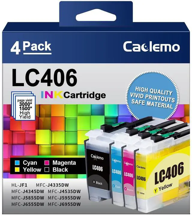 Package ContentsLC406 ink cartridges for brother printer includes 1 x Black LC406 ink cartridge, 1 x Cyan LC406 ink cartridge, 1 x Magenta LC406 ink cartridge, 1 x Yellow LC406 ink cartridge ^^ 5. Product PerformanceBrother lc406 ink cartridges also available with Brother lc406xl ink cartridges provide you with sharp and brilliant printing.