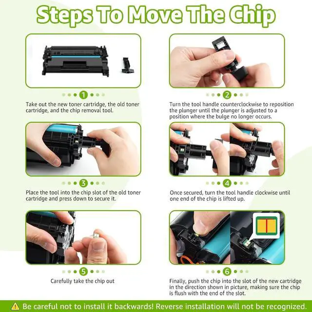 To use the product without chip, you need to manually remove the chip on the original toner cartridge and install it on our toner cartridge (and the remaining number of printable pages on the chip is available). GREENCYCLE 4-Pack Compatible Black Toner Cartridge Replacement for HP 148A W1480A Toner (NO CHIP). Product without tools. Please prepare your own tools for removing the chip. ^^ Compatible for
