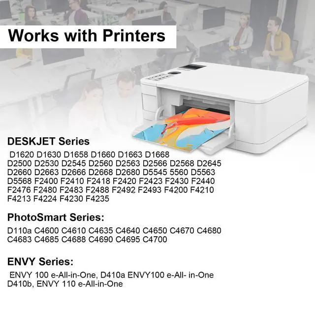 WORK WITH: For DeskJet D2680 D1620 D1630 D1658 D1660 D1663 D1668 D2500 D2530 D2545 D2560 D2563 D2566 D2568 D2645 D2660 D2663 D2666 D2668 D5545 D5560 D5563 D5568 F2400 F2410 F2418 F2420; PhotoSmart C4680 C4600 C4610 C4635 C4640 C4650 C4670 C4683 C4685 C4688 C4690 C4700 C4740 C4750 C4780 C4783 C4785 C4788; ENVY 100 110 111 114 120 121 ^^