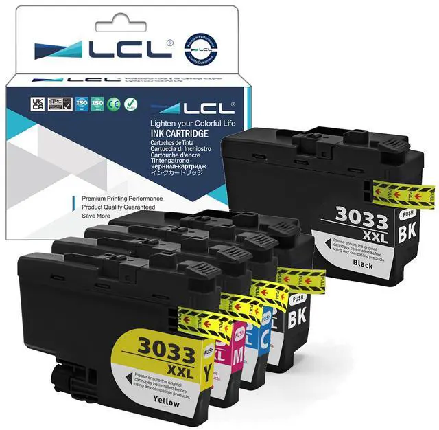 Pigment Ink: LCL LC3033XXL ink is pigment ink which has a high concentration and contrast, and is an ink that can draw fine characters clearly without color infiltration. Pigment inks are waterproof and light resistant and do not fade even when outdoors, thus allowing prints to last long enough.