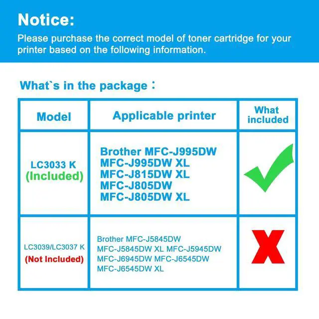 Compatible Printers: Replacement for Brother MFC-J995DW MFC-J995DW XL MFC-J815DW XL MFC-J805DW MFC-J805DW XL ^^