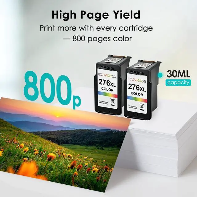 Upgraded Chips: EcoVictor for canon 276 xl color ink cartridge is equipped with the latest smart chips to ensure compatibility and allow you to monitor and track the ink for cannon 276 color ink levels. ^^ 276XL Ink Cartridges for