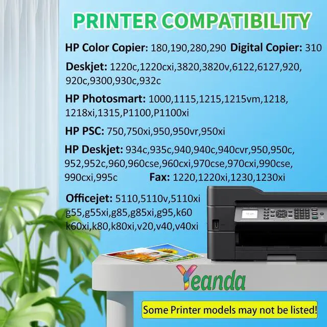 DeskJet: 820Cse 820Cxi 830 830C 832 832C 850 850C 855 855C 855Cse 855Cxi 870 870C 870Cse 870Cxi 880 880C 882 890 890C 890Cse 890cxi 895 895cse 895Cxi 930 9300 930C 932 932C 935 935C 950 950C 952 952C 960 960CseHow to install1. Remove the protective cover before installing2. Tear off the plastic tape3. Insert the ink cartridge into your printerInk Quality ControlPrint sharp text and vivid colorsPatented formula provides crisp and clear results for all your printing needsProfessional PackagingOur packing design has undergone full stress testing and complies with multi-layer shockproof standards to guarantee the integrity of your cartridges during transit. Meet Printing NeedsWe treasure you and pay more attention to your printing needsWith our professional assistance, you can expect the best value