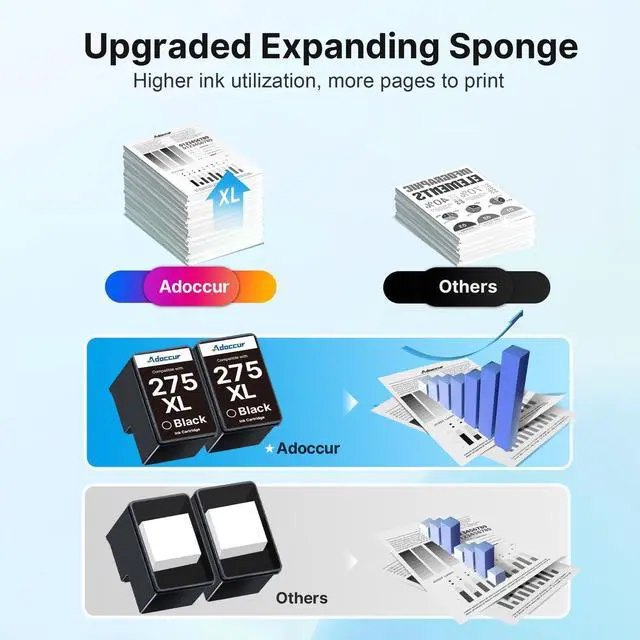 With Latest Upgraded Chips: All Adoccur 275xl ink cartridges for printers for pg-275 black ink cartridge with the latest upgraded high accuracy chips, ensure perfect compatibility with your printer ^^ Strict