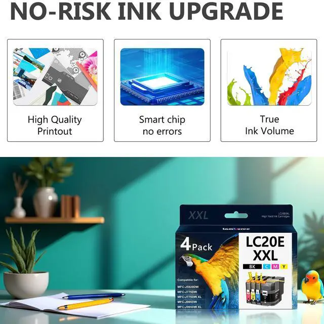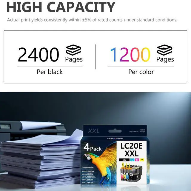 Includes: 4 Pack for LC20E XXL ink cartridges(1 x Black, 1 x Cyan, 1 x Magenta, 1 x Yellow) for printers to perfect balance of efficiency & cost control ^^