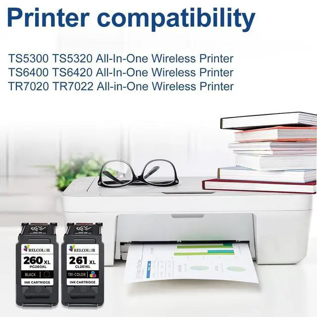• Multi-compatible Printer: Relcolor 260XL 261XL compatible with Canon TS5300 TS5320 TS6400 TS6420 TS6420a TR7020 TR7020a TR7022 All-in-One Wireless Printer