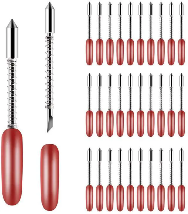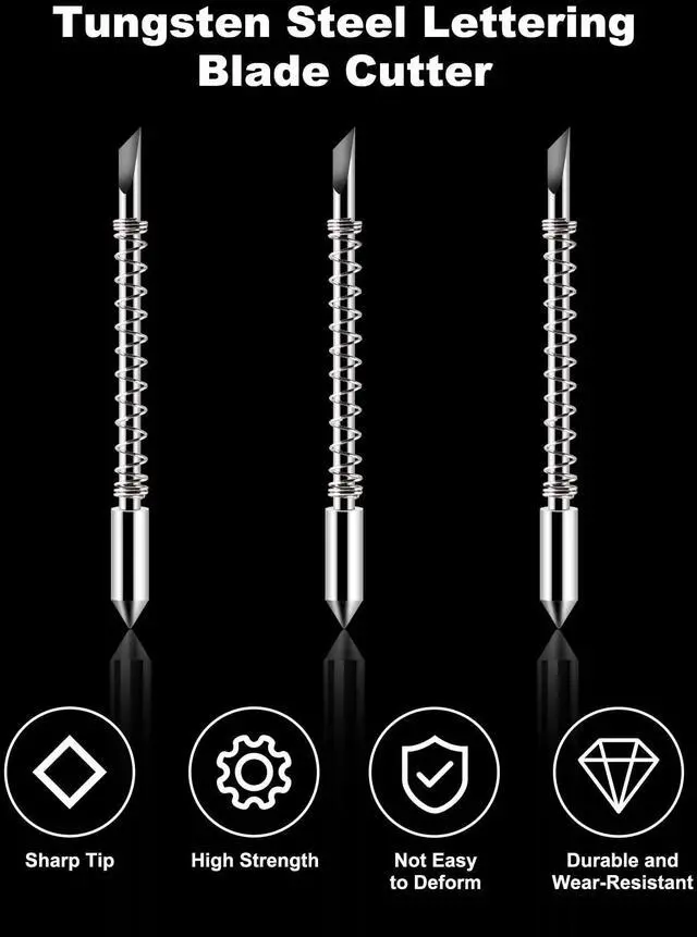 Universal Compatibility Fully compatible with Graphtec CE7000/CE 5000 120/CE 6000 60 as well as machines from major brands. The replacement fine point blade design requires no calibrationsimply install and enjoy seamless cutting performance right away. ^^ Smooth & Precise Cutting Crafted from premium tungsten carbide, the sharpened blade ensures drag-free, skip-free cuts with exceptional accuracy. Perfect for intricate designs and layered projects, delivering clean, professional finishes every time. ^^ Adapt to multiple materials These blades are suitable for processing medium-thickness materials. They have a moderate edge, balancing cutting accuracy and durability, and can easily cut paper, PVC, acrylic sheets, thin leather, foam boards, Reflective film, car film, self-adhesive paper, etc.
