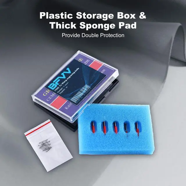 Suitable for DIY handicrafts, rubber stamp engraving and hand model cutting. ^^ Extended Lifespan & Cost Efficiency Each blade performs 5001, 500 cuts (material-dependent), offering 35x longer durability than standard blades. The high-hardness tungsten carbide construction resists rust, wear, and corrosion, staying sharp through frequent use and reducing replacement costs. ^^ Safety Protection For added safety, every 10-blade set comes with a plastic storage case and built-in sponge padding. Each blade tip is equipped with a red plastic capremove carefully before use to prevent accidents, as the blades are extremely sharp.
