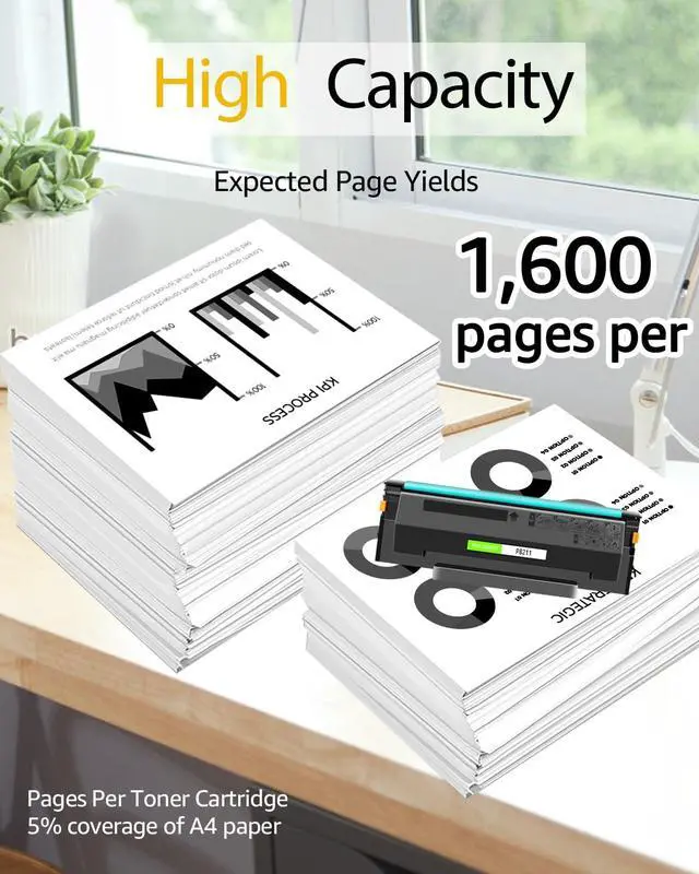 ^^ Page Yield: Up to 1, 600 pages per PB-211 black toner cartridge (based on 5% coverage of Letter size Paper). Actual toner yield varies with usage, graphics printed and environmental conditions. ^^ Compatible for