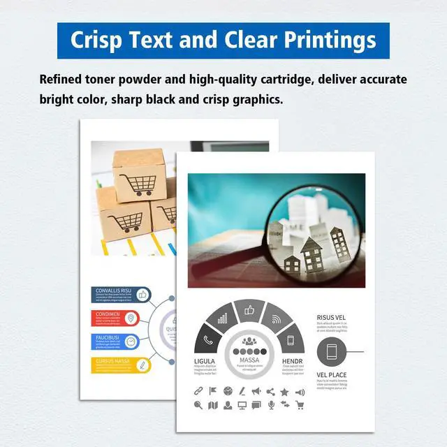 • Print Advantages - - Refined toner powder and high-quality cartridge, deliver accurate bright color, sharp black and crisp graphics.