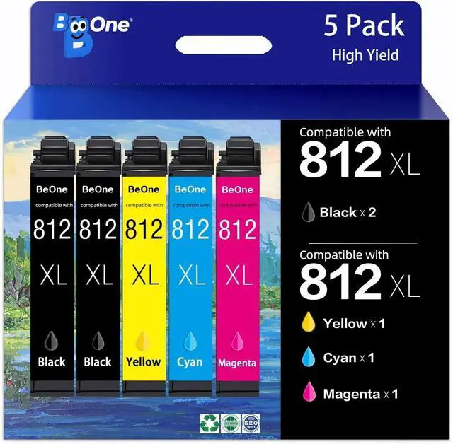 Latest Upgraded Chips: BeOne 812xl Remanufactured for Epson 812 ink cartridges combo pack with Advanced Smart-Chip Technology for Auto-Detects & Syncs and works for Universal Firmware ^^ For Epson 812 ink cartridges