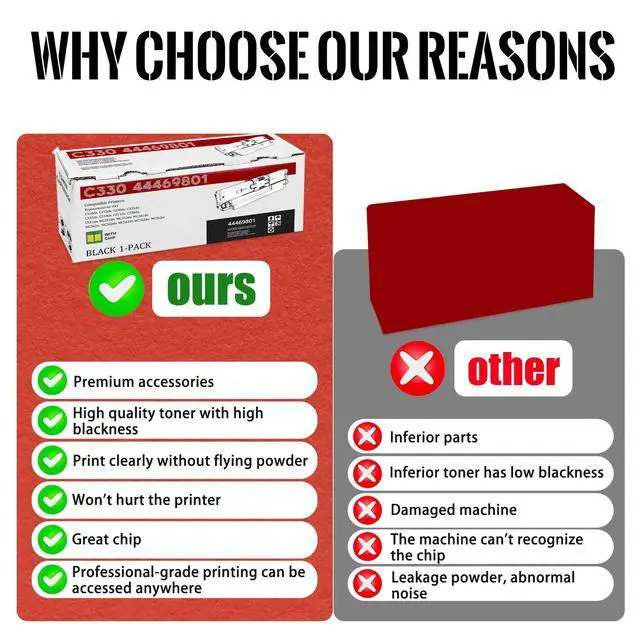 Package contents: 1 Pack black Compatible for OKI C330 44469801 toner cartridge.