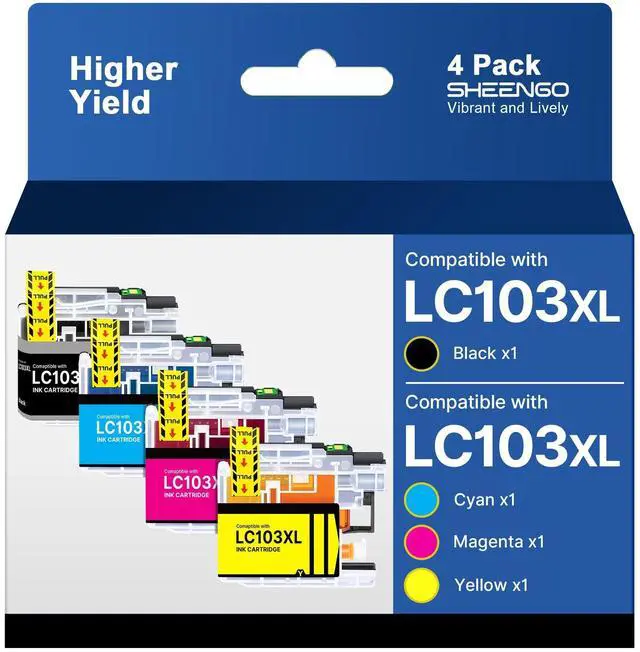 Package Contents: Total 4 packs for LC103XL printer ink cartridges, 1 x Small Black LC103XL ink cartridge, 1 x Cyan LC103XL ink cartridge, 1 x Magenta LC103XL ink cartridge, 1 x Yellow 251XL ink cartridge ^^