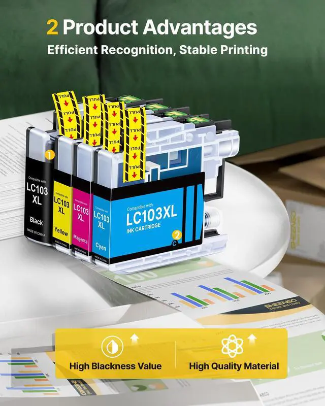 Quality Ink: All ink LC103XL cartridges delivers crisp text and graphics and compatible for MFC-J475DW ink cartridges