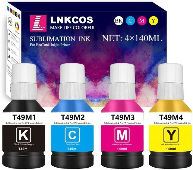 Included Items: 140ML Black T49M1 Sublimation Ink, 140ML T49M2 Cyan Sublimation Ink, 140ML T49M3 Magenta Sublimation Ink, 140ML T49M4 Yellow Sublimation Ink, Total 560ML, 4 Pack ^^