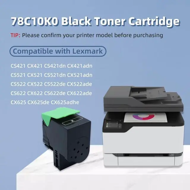 COMPATIBLE MODEL: 78C10K0 black toner cartridge compatible with lexmark CS421 CX421 CS421DN CX421ADN CS521 CX521 CS521DN CX521ADN CS522 CX522 CS522DE CX522ADE CS622 CX622 CS622DE CX622ADE CX625 CX625DE CX625ADHE printer.