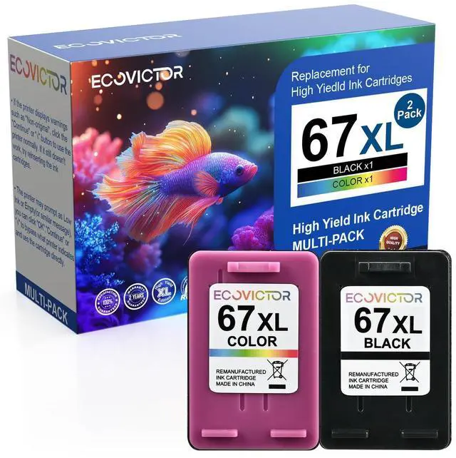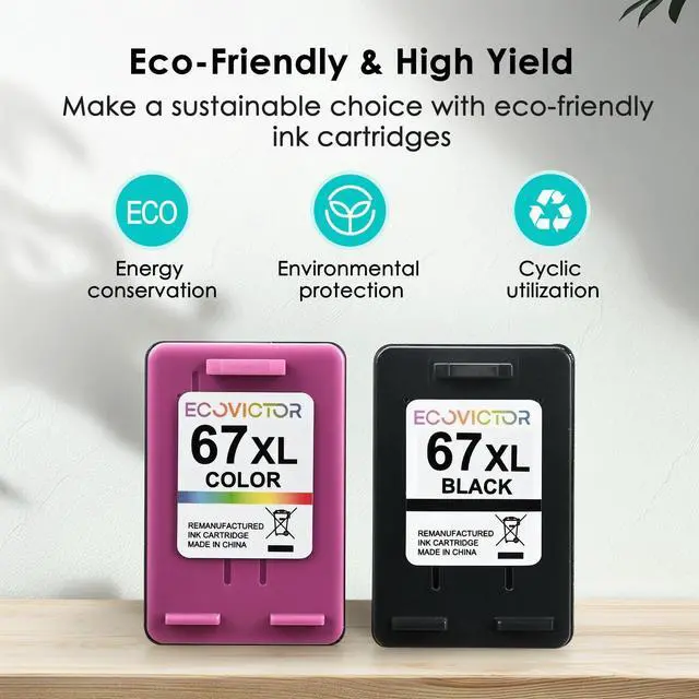 ^^ Eco-Friendly Printing Excellence: EcoVictor 67 xl ink cartridge for hp printers are made from durable, eco-friendly materials. This for 67xl hp printer ink offer higher capacity and premium ink quality through rigorous cleaning, refurbishing and refilling. Meeting FSC standards, this for hp printer ink 67 support sustainability. The ink for hp 67xl black ink cartridge prints sharp, clear black text for documents, and the ink for hp 67xl color ink cartridge produces vibrant, natural color photos.