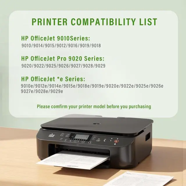 Series: 9010e, 9012e, 9014e, 9015e, 9018e, 9019e, 9020e, 9022e, 9025e, 9026e, 9027e, 9028e, 9029e. ^^ Printing Control with Smart ChipFeaturing advanced chip technology, our remanufactured HP 962XL black and color ink cartridges provide instant recognition and produce vibrant photos, crisp documents, and clear text. Fully compatible with HP offoceJet series printers. ^^ Sealed Packaging & Usage TipsEach HP 962XL black & color combo pack comes in high-quality, durable packaging that ensures product integrity during shipping and storage. If they can't work at first, here are some instructions for you: (1) Please make sure the black cover had been removed before you installing the ink. (2) Please take soft tissue paper with ethyl (clean water is also fine) to wipe print head of ink-jet. (3) Please take an eraser/soft tissue paper to wipe the chips and the contact point of both ink-jet and the printer to solve bad-connection problem.