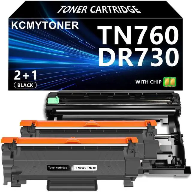 ^^ BOX Include: 2 Pack TN760/TN-760 Black toner cartridge, 1 Pack DR730 Drum unit all toner cartridge with smart Chip ^^ KCMYTONER Toner Cartridge has Certified ISO 9001 for quality assurance. Environment assured Certified ISO 14001. Performance you can rely upon. ^^ tn-760/tn-730 toner cartridge and dr730/dr-730 drum deliver the best quality printing results: sharp text, bold blacks, crisp graphics and resists fading, smudging, and bleeding. Easy to install. Perfect partner with your printer and copier. Perfect compatibility for your printer.
