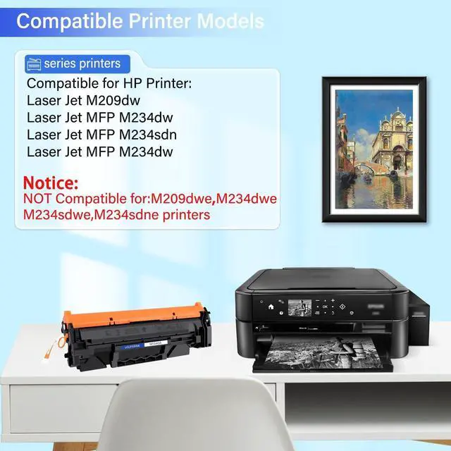 Incompatible with: M209dwe M234dwe M234sdwe M234sdne ^^ Printers with our toner are unable to display the amount of toner remaining, but this does not affect print quality or page yield. Estimated yield to 1, 100 pages per W1340A toner cartridge (under condition of 5% coverage in A4 paper). Meet in the requirement of ISO/IEC 19752 ^^ Excellent