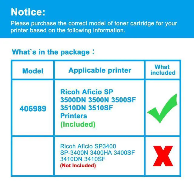 Purchase Notes: NOT Compatible with Ricoh Aficio SP3400 SP-3400N 3400HA 3400SF 3410DN 3410SF Printer.