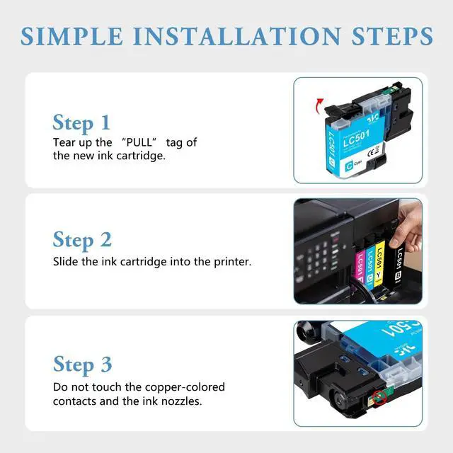 Package Content: Include 4 pack LC501 ink cartridges, 1 x LC501 black ink cartridge, 1 x LC501 cyan ink cartridge, 1 x LC501 magenta ink cartridge, 1 x LC501 yellow ink cartridge ^^