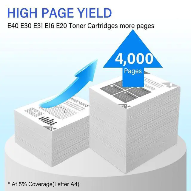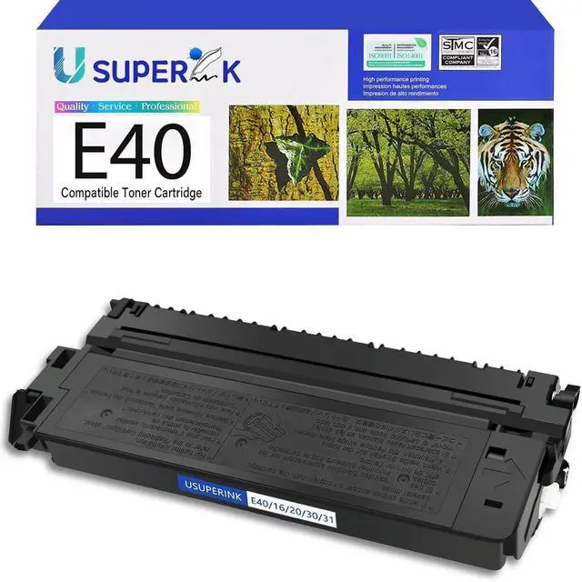 Package Contents: 1 x E40 Black Toner Cartridge, 1 x User Guide. USUPERINK strikes for every customer's satisfaction ^^ Estimated yield to 4, 000 pages (under condition of 5% coverage in A4 paper). Meet in the requirement of ISO/IEC 19752 ^^ Compatible for