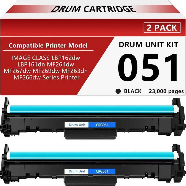 Package includeNineLeaf great quality 2 Pack black CRG051 drum compatible for Canon 051 drum unit which works with CRG051/CRG051H toner cartidge. (Please note package only included the drum, no cartridge) ^^ High Page Yieldhigh yield 23, 000 pages per based on 5% coverage of Letter size Paper. (Actual toner yield varies with usage, graphics printed and environmental conditions. ) ^^ Compatible for Canon PrinterImageCLASS LBP162dw; ImageCLASS lbp161dn; ImageCLASS MF264dw; ImageCLASS MF267dw; ImageCLASS MF269dw; ImageCLASS MF263dn; ImageCLASS MF266dw ^^ Outstanding PerformanceOur DRUM offer the same print quality results as