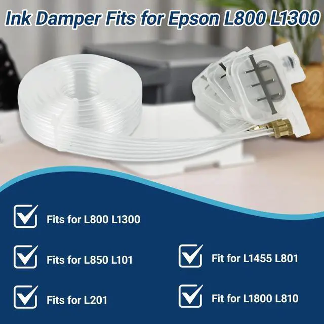 COMPATIBLE WITH MODELS: Printer ink damper for Epson L800 L1300 L1455 L801 L1800 L810 L850 L101 L201, for Epson L1300 L1455 L101 L800 L801 L1800 L810 L850 L101 L201, For Epson L1300 L1455 L101 L800 L801 L1800 L810 L850 L101 L201, for Epson R1390 L1800 R2000 DTF printer. No need to worry about compatibility issues; ^^