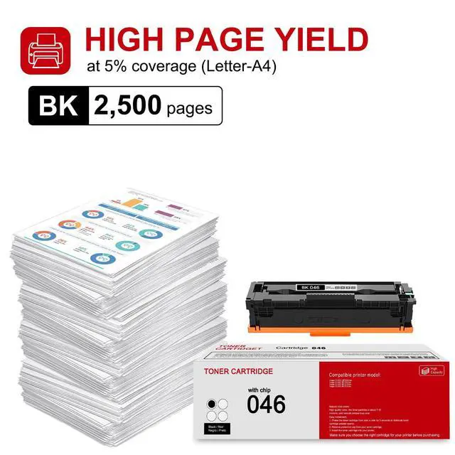 ^^ Page Yield: 2, 500 pages per 046 Black Toner Cartridge at 5% coverage. ^^ Compatible for