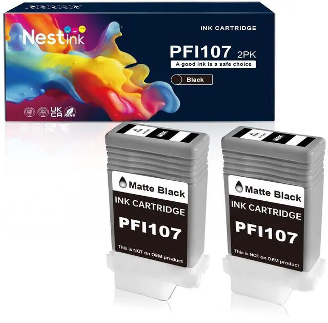 Nestink PFI-107 130ml Ink Tank (2-Pack, Matte Black) Lometic Compatible PFI-107MBK Ink Replacement for iPF680/685/780/785 Printer, PFI-107MBK Ink Cartridge Matte Black - 2 Packs in Retail Packing