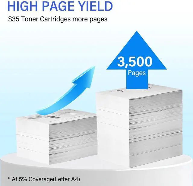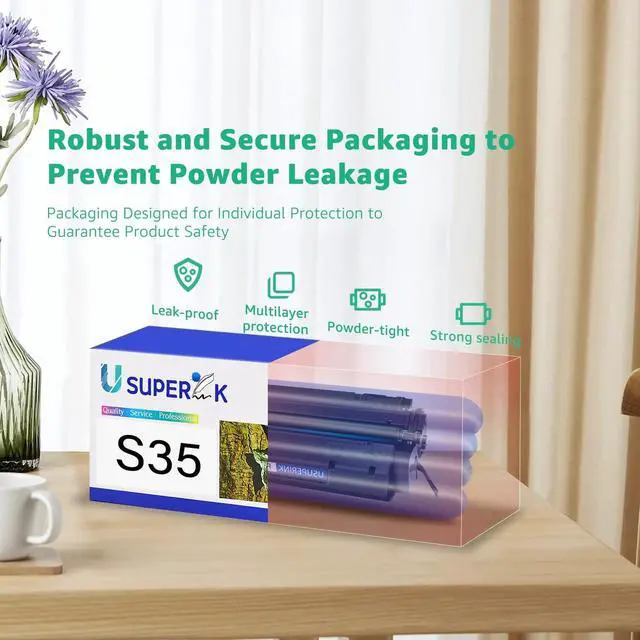 Package Contents: 2 x S35 Black Toner Cartridges, 2 x User Guides. USUPERINK strikes for every customer's satisfaction. ^^ Estimated yield to 3, 500 pages per S35 toner cartridge (under condition of 5% coverage in A4 paper). Meet in the requirement of ISO/IEC 19752 ^^ Compatible for