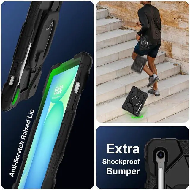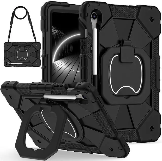CompatibilityThe Tablet case compatible with Samsung Galaxy Tab S10 Lite /Galaxy Tab S10 FE (X520/X526B/X528U) /Galaxy Tab S10/Galaxy Tab S9 FE (X510/X516B/X518U) /Galaxy Tab S9 (X710/X716B/ X718U), Note: Not suitable for other models, Please check your tablet before making a purchase. (Go to " Settings " on your tablet - About Tablet - Model). ^^ High Quality Materials The Tablet Case is made of advanced thermoplastic polycarbonate and anti slip silicone, which is heavy-duty and sturdy, The four corners are thickened and designed, perfectly protecting your machine from damage. ^^ Adjustable Stand The prominent PC stand allows you to easily access, type, watch movies, play games, and more during your study, work, and leisure travels. Flexible expansion and contraction, without taking up space. ^^ Built in Pen HolderBuilt in Apple Pencil slot, convenient for placing and removing pencils, no longer worrying about loss or damage. Always keep Apple Pencil as secure as iPad (only protective case, not Pencil included! ) ^^ Multi Functional Shoulder StrapComes with a detachable and adjustable shoulder strap, both children and adults can carry the tablet case with them, especially suitable for travel. You can hang it behind your seat like a TV while driving.