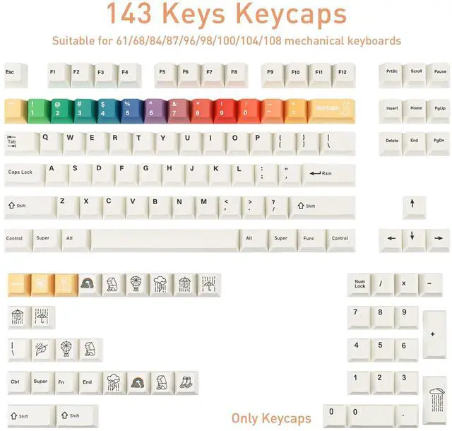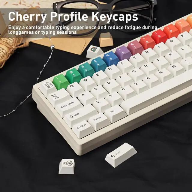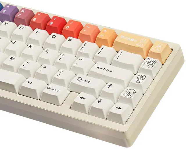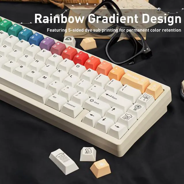 Gradient Rainbow Design: Creamy white keycaps feature a charming rainbow design, perfect for keyboard caps fans who love nature themes ^^