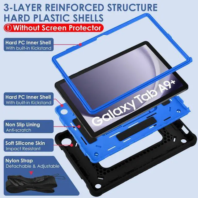 Compatiblility: Heavy Duty Protection Shockproof Rugged Case Designed For Samsung Galaxy Tab A9+/A9 Plus 11 inch 2023 Tablet (SM-X210/X216/X218), NOT For Other Tablet Model; Please Click "Settings-System-About Tablet-Model" To Check Your Tablet Model; (DON'T contain a screen protector. ) ^^