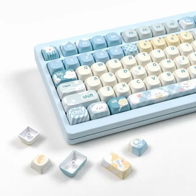 Keyboard Key Caps: Cute blue keycaps adopts advanced dye sublimation technology, the color pattern is more vivid, not afraid of oil stains, and has a long service life! ^^