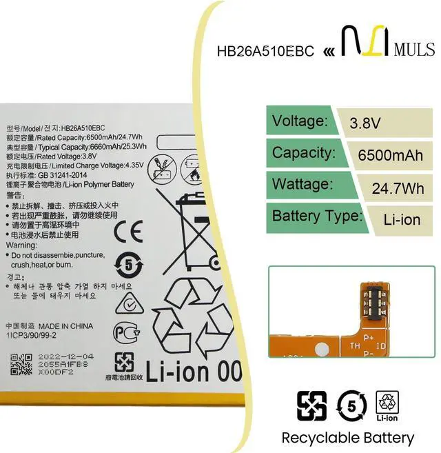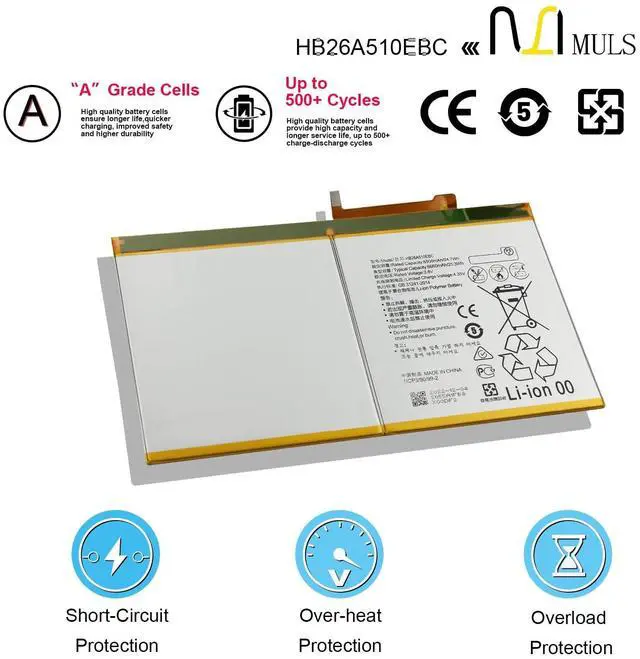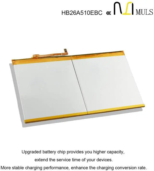 Voltage: 3.8V. 100% brand new. Up to 500 recharge cycles over the life of the battery. High-quality materials and circuit board. ^^ Replacement For LaptopFit for Huawei MediaPad M2 10 10.0 M2-A01W M2-A01L 10.1 -inch, MediaPad M3 Lite 10 10.0 Bach-L09 Bach-W09 BAH-L09 BAH-W09, MediaPad T2 10.0 Pro FDR-A01L FDR-A03L FDR-A04L. ^^ Compatible with Part NumberFit for HB26A5I0EBC HB26A510EBC 1ICP3/90/99-2. ^^ Safety Above AllOur batteries are certified by CE, FCC and RoHS to ensure your safety, and packed with prevention measures like short circuit, overheat and overcharge protection. Our Tablet batteries are made with premium materials and circuit boards to ensure performance and durability. ^^ Give Customers the