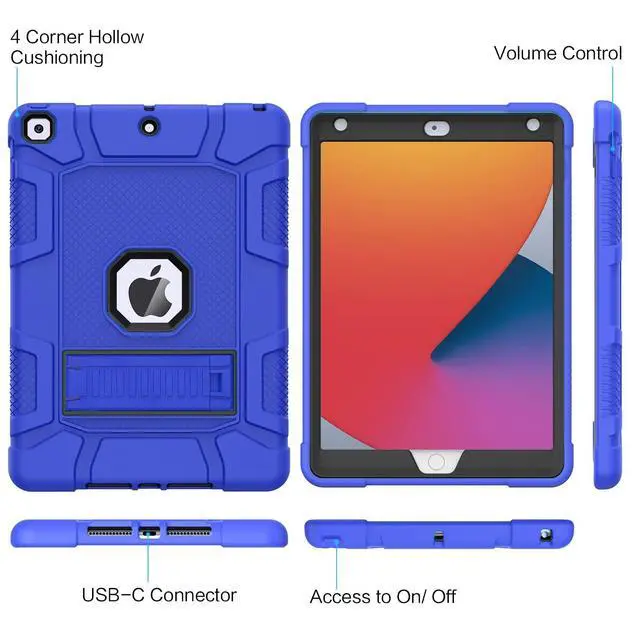 Compatible Model: A2602/A2603/A2604/A2605/A2270/ A2428/ A2429/ A2430/ A2197/ A2198/A2200. [No Screen Protector]DO NOT fit other iPad. ^^ Three-layer structure of premium shock-absorbing TPU and durable hard polycarbonate provide a perfect protection against accidental drops, scratches, bumps and shock. ^^ Super sturdy and Easy To Carry = Absolutely Kids Friendly. ^^ Functional kickstand allows easy access to your favorite shows, movies, and games while on the go. ^^ It's easy to access all buttons, speakers, cameras and sensors through the precisely-cut openings.