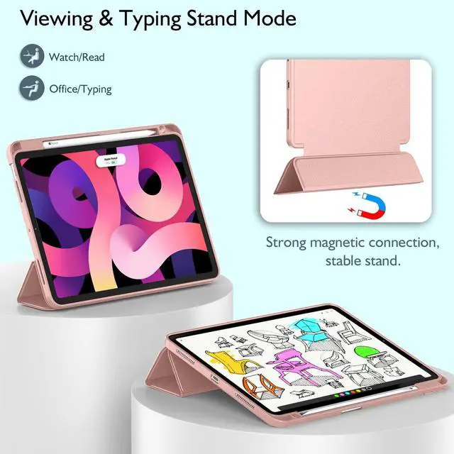 Generation 2022 (model number: A2589 A2591 A2588) / iPad Air 4th Generation 2020 (A2316 A2324 A2325 A2072). Not compatible with any other devices. Please check the back bottom of your iPad to find the model number. ^^ Compatible for Apple Pencil Pro & 2nd Gen & Apple Pencil (USB-C), Support charging and attachment feature. ^^ [Full Protection] Made of PU exterior, microfiber lining and Soft TPU back cover. Provide full body protection against shocks, drops and scratches. ^^ [Support Touch ID and Auto Sleep/Wake Feature] Magnetic smart cover supports auto wake /sleep function. Powerful magnet secures the case closure, easy to snap on and off. ^^ [Different Viewing Angles] Designed with dual standing positions for users to adjust the iPad into different angles.