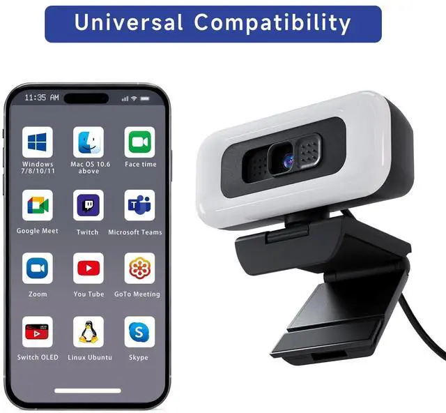 ^^ WIDE APPLICATIONS: Computer camera for desktop is compatible with Iphone, IPAD, Mac book and Windows. It is compatible with a wide range of software: Chrome, Streamyard, Discord, Skype, twitch, Zoom and more.