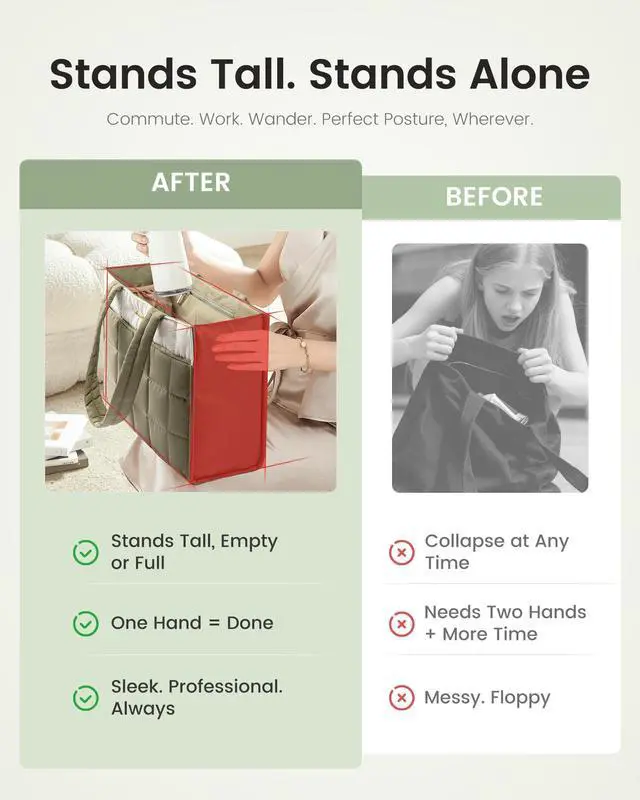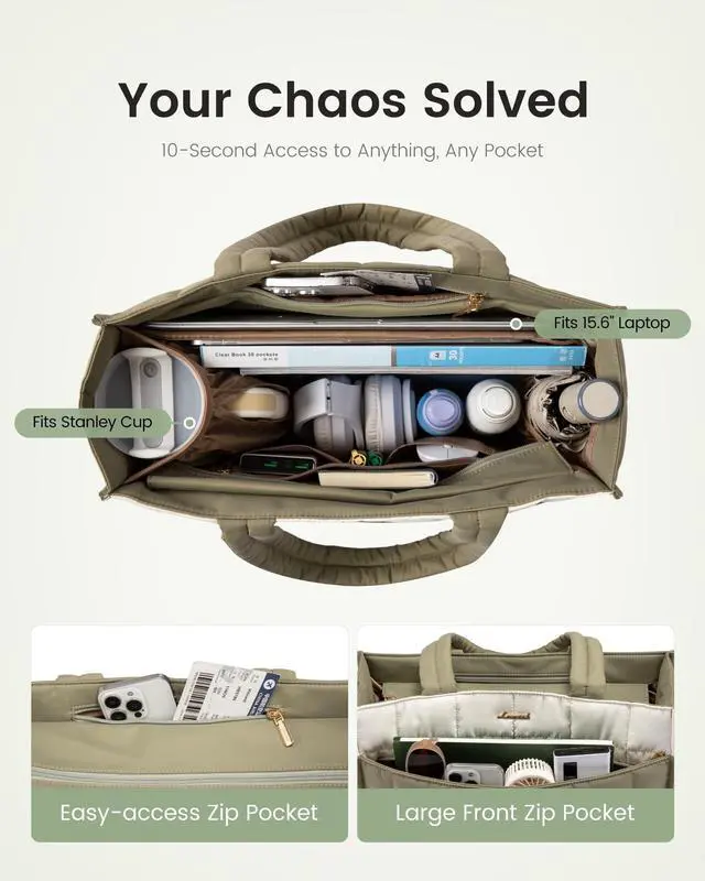 Commute Without the BurdenWeighs just 1.3 lbs! Say goodbye to heavy bagsover 50% lighter than traditional leather laptop totes! This ultra-light tote is your go-to for commuting, work, errands, or travel. ^^ Always Polished & Professional Its frame structure ensures it stands upright, even when emptyno slouching! Maintain a polished look at all times. The wide rectangular opening offers clear visibilitysee & grab anything in seconds! ^^ 25L Spacious & Organized Holds everything you need and more! Features 12 dedicated pockets, including a padded laptop compartment (fits up to 15.6" )