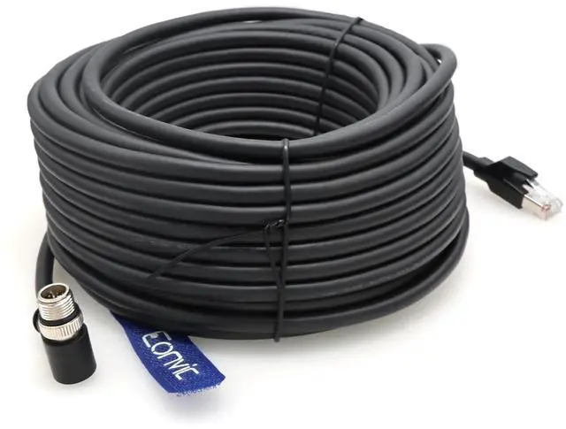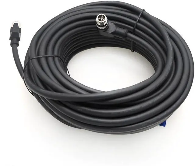 • M12 X-code RJ45 E4 Plug ETHERNET Cable is a single foil twisted pair cat5e cable with a black PUR jacket rated at 24 AWG wire M12 Connector with gold plated 8 pin coded contacts ensure reliable connectivity