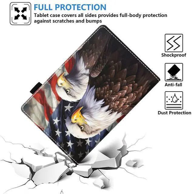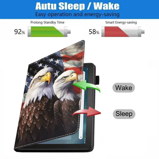 Perfectly decor your tablet, Beauty and function come together. Made of High end PU leather, features shockproof, protective smooth outer casing and sturdy exterior with soft microfiber interior keeps your tablet screen safe. Convenient multi viewing kickstand for watching movie or typing. Great for holding in landscape mode to watch videos. Designed with 4 delicate card slots inside for you to carry your necessary cards. There is a flexible pencil holder at the edge of the shell for keeping your stylus in place (Stylus is not included). Provide auto sleep/wake, Open the case to wake up and close the case to shut off, Saved power.