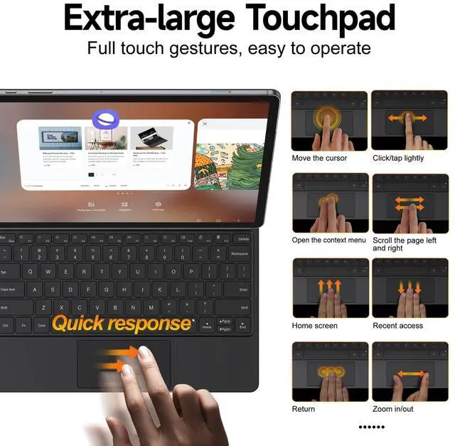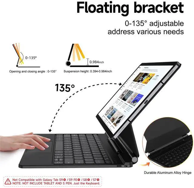 Tab's soulmate: Magnetic floating cantilever lifts your screen like magic. Adjust angles 0-135 for perfect Netflix-binging or Zoom-crushing. Finally - a laptop experience without the $1, 000 price tag. ^^ Precision Touchpad + Secret Convenient ShortcutSwipe, zoom & scroll like a MacBook Pro.