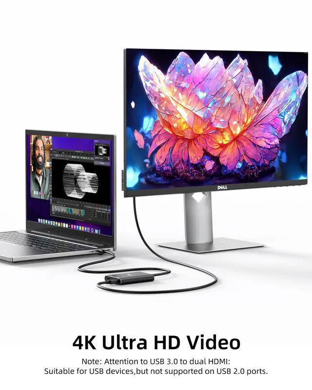^^ Premium SM768 Chip: This USB 3.0 to Dual HDMI adapter uses the SiliconMotion SM768 chip, which supports PCs/laptops with USB 3.0 ports. By connecting to a USB port that cannot output video, it allows the addition of two extra screens, with a maximum resolution of 4K for a single screen.