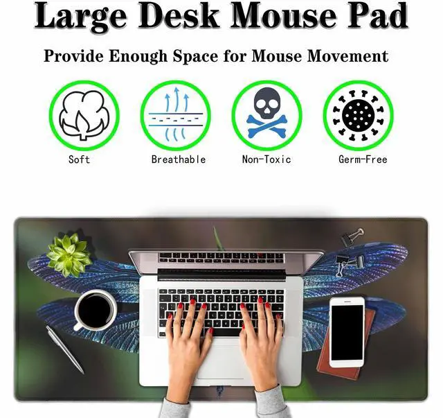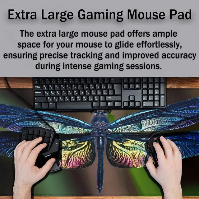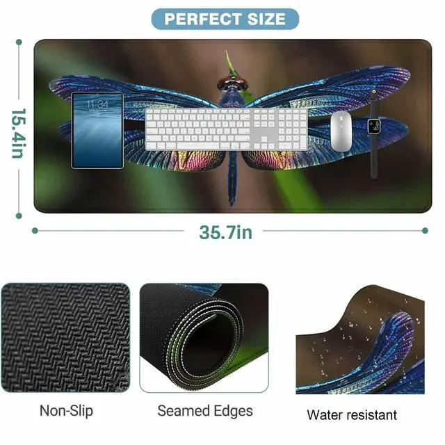 Y YIHANGBEST Dragonfly Desk Mat Large Mouse Pad Colorful Beautiful Wing Full Extended Gaming Computer Keyboard Mousepad for Home,Office 35.4"X15.7"